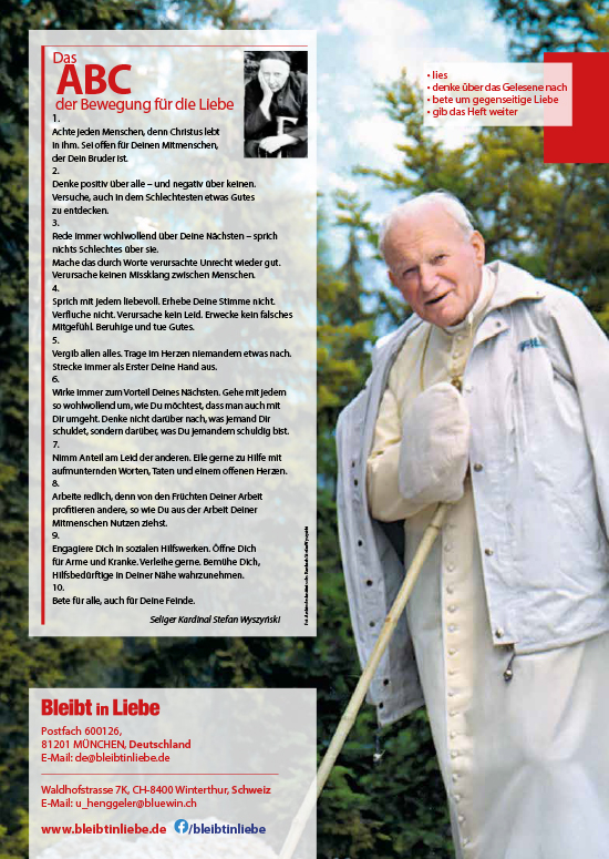 Herzlich laden wir Sie zur Lektüre der neuen Ausgabe „Bleibt in der Liebe“ (4-2025) ein: